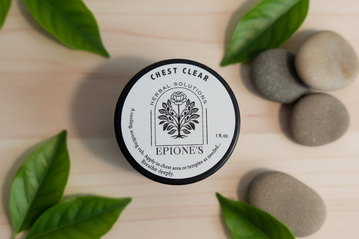 Chest Clear is an all-natural ointment designed for clearing chest congestion. It's made with clean ingredients that help relieve discomfort from coughs and colds. This product offers a practical and effective solution for anyone looking for a natural way to alleviate chest congestion without the mainstream petroleum ingredients.